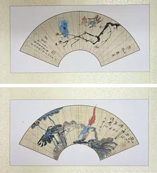 Two Silk-Mounted Fan Paintings by Chen Zhaoxinming